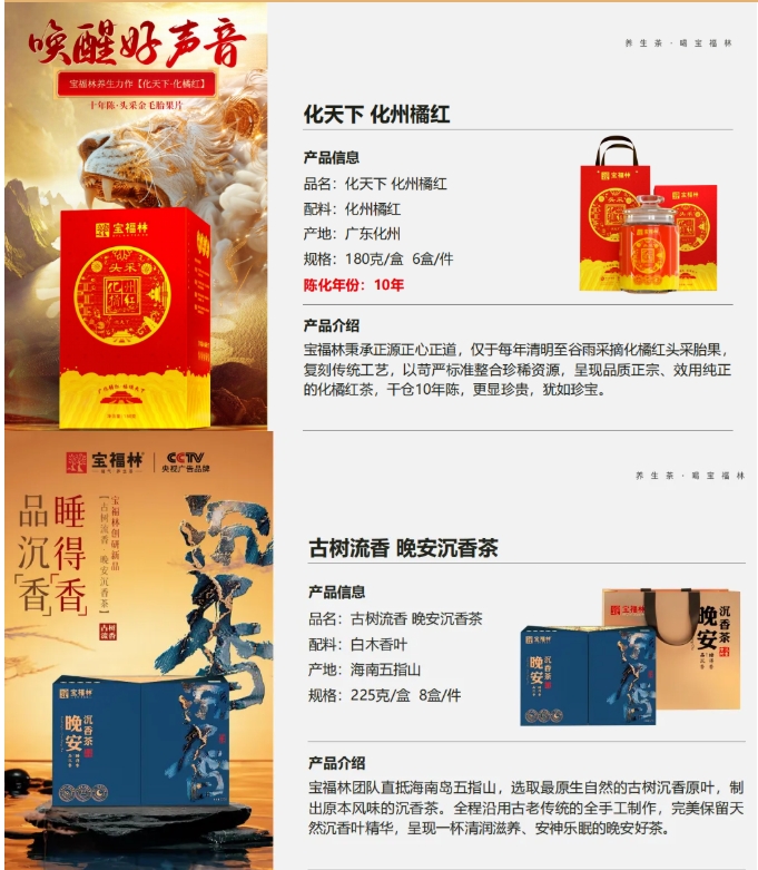 【优势自主品牌】宝福林系列陈皮、小青柑、化州橘红,石斛,鹿茸等滋补养生茶。