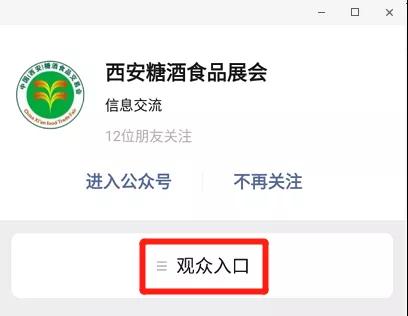 第一步:关注“西安糖酒食品展会”官方微信公众号。