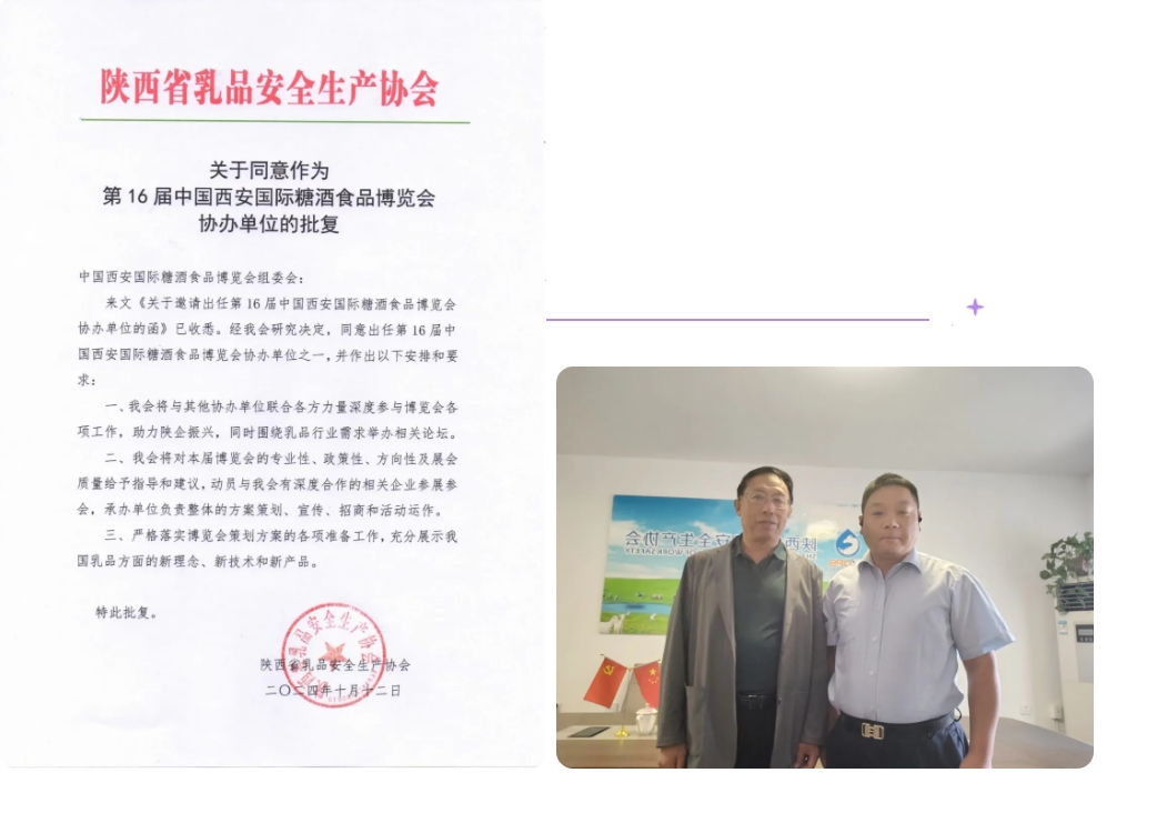10月11日,秋意正浓,西安糖酒会的负责人一行前往陕西省乳品安全生产协会进行友好访问。此次拜访旨在加强双方合作,共同推动乳品行业的繁荣发展。陕西省乳品安全生产协会副秘书长王伟民热情接待了来访的西安糖酒会团队,并就未来的合作方向进行了深入交流。